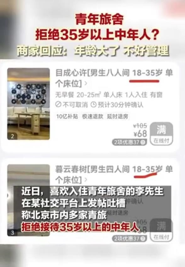 近日,#青旅不接待35歲以上人群#話題沖上熱搜,引發(fā)熱議。該話題源于一網(wǎng)友發(fā)布的帖子。該帖子表示,某平臺上北京不少青旅商家拒絕年齡35歲以上的人群入住。該網(wǎng)友詢問原因,得到的回答是“年齡大的上下床不安全容易出事。”對此答復,不少網(wǎng)友不能認同,認為是“借口”。