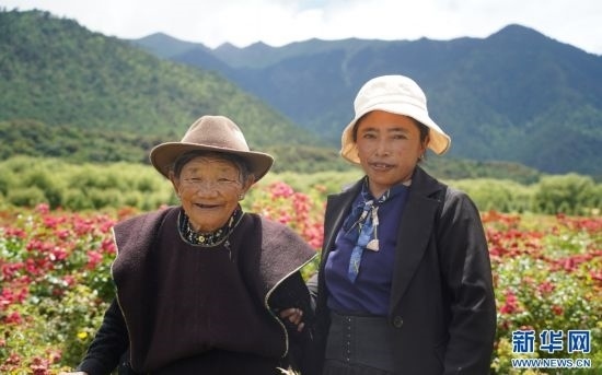 家在朵當(dāng)(卡達(dá))村的索朗卓瑪帶著自己81歲的母親前來(lái)賞花。她說(shuō),“村子里能開(kāi)出這么漂亮的花,感到特別高興。帶媽媽來(lái)賞花,再拍拍照,很開(kāi)心。”母女二人的笑臉在花朵的映襯下更加燦爛。