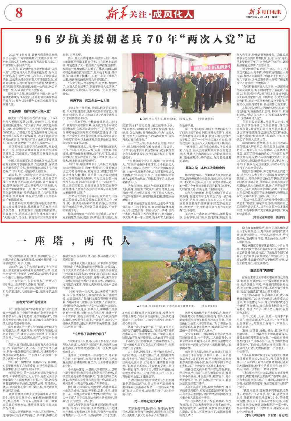 70年前,顧克明曾在抗美援朝戰(zhàn)場(chǎng)“火線入黨”,卻因介紹人壯烈犧牲未能如愿,如今莊嚴(yán)宣誓,老人“此生無憾”。70年間,無論在戰(zhàn)場(chǎng)殺敵,還是兩次投身國家重大項(xiàng)目艱苦創(chuàng)業(yè),或是離休后用自身經(jīng)歷作為紅色教育“活教材”,顧克明都絕無畏縮逃避,他用一心向黨、矢志不渝的一生,寫就最莊嚴(yán)的入黨誓詞。