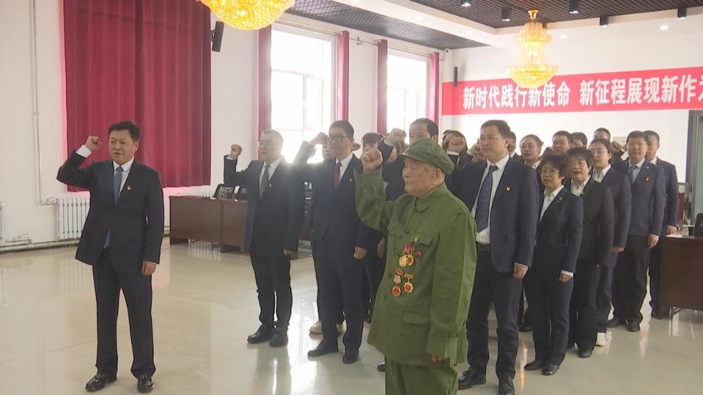 2023年4月6日,霍林河煤業(yè)集團(tuán)有限責(zé)任公司(以下簡(jiǎn)稱霍煤集團(tuán))大樓會(huì)議室,96歲老兵顧克明在鮮紅黨旗前再次舉起右拳,莊嚴(yán)宣誓加入中國共產(chǎn)黨。