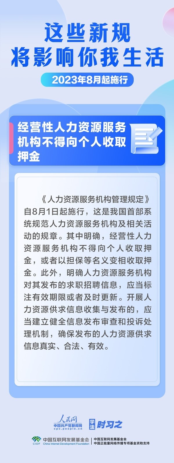 促進(jìn)生成式人工智能健康發(fā)展;擴(kuò)大適用個稅優(yōu)惠政策的商業(yè)健康保險產(chǎn)品范圍;明確經(jīng)營性人力資源服務(wù)機(jī)構(gòu)不得向個人收取押金……8月,這些新規(guī)施行,將影響你我生活。