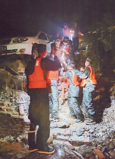 因暴雨引發(fā)山體滑坡,北京市門頭溝區(qū)妙峰山鎮(zhèn)水峪嘴村大量房屋被沖垮。武警北京總隊機動某支隊分散摸排村莊、搜救傷員。經(jīng)過22個小時持續(xù)奮戰(zhàn),轉(zhuǎn)移受災(zāi)村民107人,轉(zhuǎn)運村民物資財產(chǎn)1100余件。