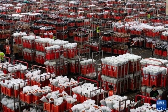 每天,由花農(nóng)采摘的鮮花進(jìn)入分揀包裝車間,預(yù)冷、分級(jí)、包裝、入庫(kù)冷藏等工作井然有序地開(kāi)展。經(jīng)過(guò)采后處理的鮮花一部分通過(guò)園區(qū)自有物流直接向客戶發(fā)貨,一部分則由專門的鮮花運(yùn)輸車運(yùn)往昆明國(guó)際花卉拍賣交易中心,開(kāi)啟拍賣流程。