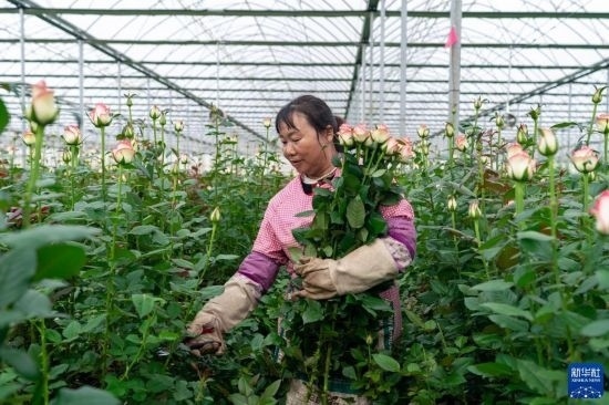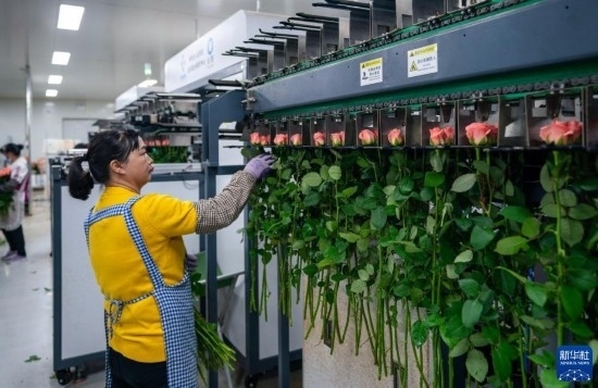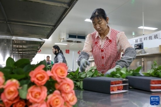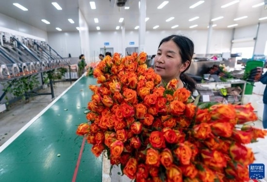 清晨,在云南省昆明市晉寧區(qū)云天化晉寧花卉產(chǎn)業(yè)現(xiàn)代化示范園內(nèi),品類各異的鮮花競(jìng)相綻放,花農(nóng)們?cè)诂F(xiàn)代化大棚里忙著采摘、搬運(yùn)。云天化晉寧花卉產(chǎn)業(yè)現(xiàn)代化示范園是集育苗、智能溫室大棚、水肥一體化、無(wú)土綠色栽培、全程數(shù)字化管理系統(tǒng),以及鮮切花采后處理、預(yù)冷儲(chǔ)藏等為一體的高標(biāo)準(zhǔn)設(shè)施農(nóng)業(yè)產(chǎn)業(yè)園區(qū),年產(chǎn)鮮切花1.6億枝。