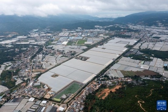 這是7月12日拍攝的云天化晉寧花卉產(chǎn)業(yè)現(xiàn)代化示范園(無(wú)人機(jī)照片)。新華社記者 陳欣波 攝