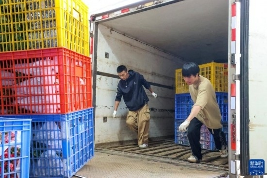 一名花商在昆明國(guó)際花卉拍賣交易中心外準(zhǔn)備將拍得的鮮花裝車運(yùn)走(7月13日攝)。新華社記者 陳欣波 攝