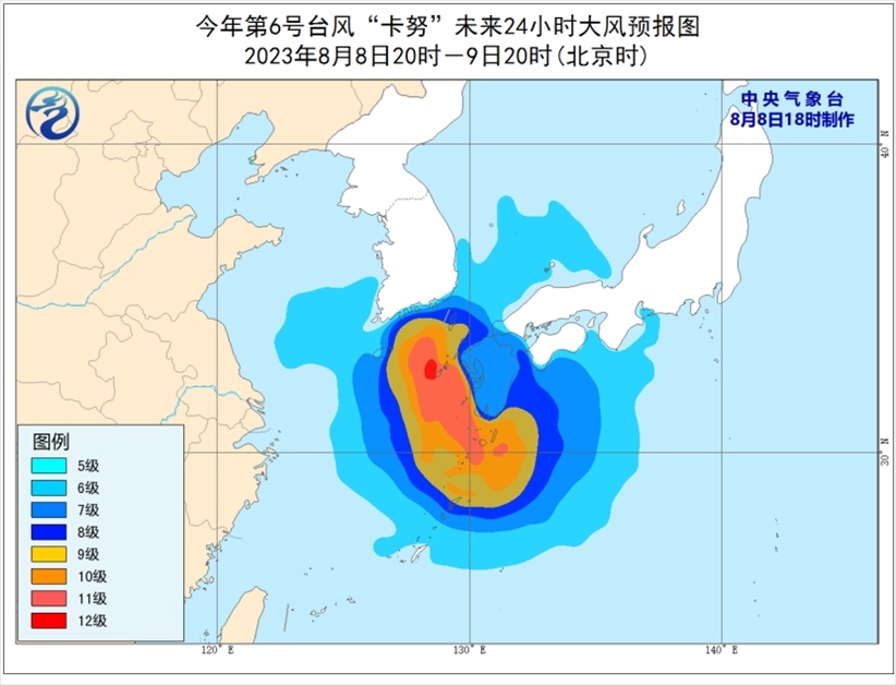 受“卡努”影響,8月8日至9日,巴士海峽、臺(tái)灣海峽北部、臺(tái)灣以東洋面、東海南部和東部及釣魚島附近海域有6級(jí)至7級(jí)大風(fēng),東海東部部分海域風(fēng)力可達(dá)8級(jí)至10級(jí),“卡努”中心經(jīng)過的附近海域風(fēng)力可達(dá)11級(jí)至12級(jí),陣風(fēng)13級(jí)至14級(jí)。