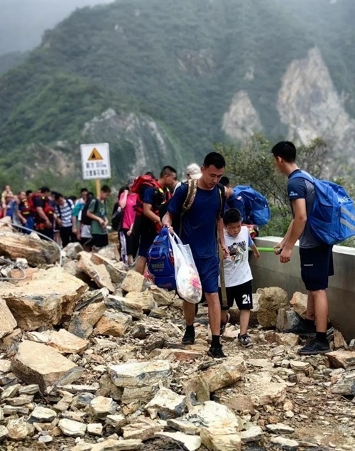 10多個消防官兵專門護送他們撤離,走過懸崖邊時,消防官兵拿桿子擋在外面,再用身體連成一堵墻,以防他們掉下去。有的學生邊走邊說,“這次回去寫作文的素材有了,這才是真正的大場面。”