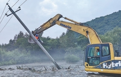 8月9日,在吉林省汪清縣八人溝農(nóng)場(chǎng),國(guó)網(wǎng)吉林電力公司共產(chǎn)黨員服務(wù)隊(duì)在搶修停電線路。卜 育 石 健攝影報(bào)道