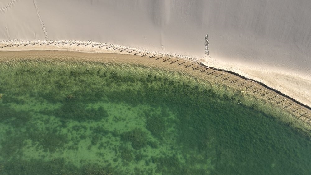 20多年來,月牙泉及其周邊實(shí)行嚴(yán)格的水資源管理。為維系沙泉共生的微妙平衡,泉水南北兩側(cè)的沙山被封禁,人們漫步在月牙泉周邊時(shí),需要套上鞋套。