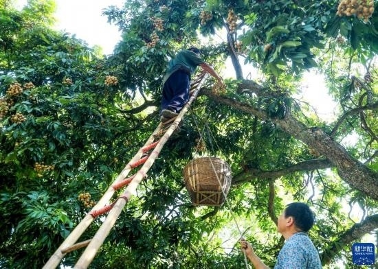 8月23日,四川省瀘州市江陽區(qū)黃艤鎮(zhèn)羅灣村村民在采摘桂圓。
