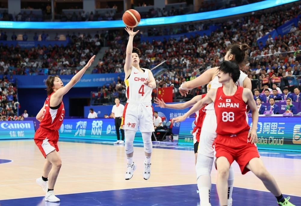 決賽開場(chǎng),兩隊(duì)球員都略顯緊張,中國(guó)隊(duì)幾次中投失手,日本隊(duì)數(shù)次快攻也未能建功。依靠韓旭在內(nèi)線的牽制,黃思靜連續(xù)命中2記遠(yuǎn)投,李夢(mèng)突破打成“2+1”,中國(guó)隊(duì)打出17:7的開局。面對(duì)身材更高大的中國(guó)姑娘,日本球員通過不斷突破傳球創(chuàng)造得分機(jī)會(huì)。首節(jié),中國(guó)隊(duì)26:16領(lǐng)先對(duì)手。