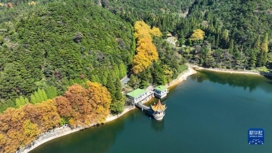 10月20日拍攝的廬山如琴湖秋景(無(wú)人機(jī)照片)。