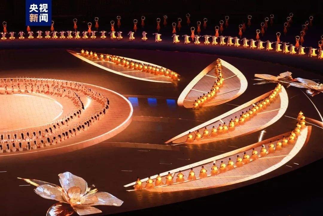 今晚的“大蓮花”,處處見桂花,時(shí)時(shí)聞得到桂花香。一朵“金桂之花”到22組金桂花團(tuán),從分散到匯聚,時(shí)而形成流水,時(shí)而形成拱橋,最終將在空中形成巨大的“金桂花冠”,向每一位運(yùn)動(dòng)員傳遞“逐夢(mèng)折桂”的美好寓意。