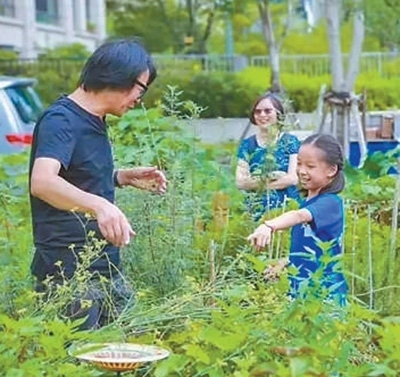 社區(qū)居民在創(chuàng)智農(nóng)園了解種植相關(guān)知識。上海四葉草堂青少年自然體驗(yàn)服務(wù)中心供圖