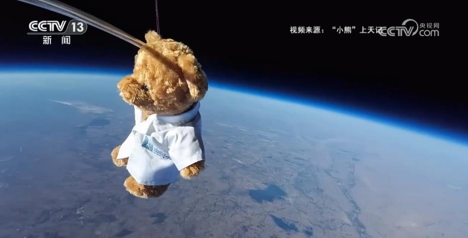 氦氣球托升著一只毛絨小熊,在泛著藍(lán)色光暈的地球上漂浮旋轉(zhuǎn)。本周二,這則小熊萬米飛天、與地球合影的視頻,被稱為理工生的優(yōu)雅浪漫。