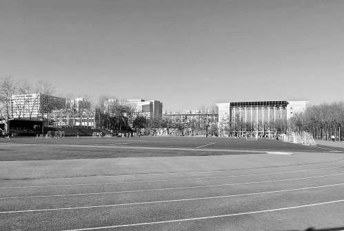 藍(lán)天下,標(biāo)準(zhǔn)的400米跑道舒展開闊,十來個學(xué)生在跑步繞圈兒,還有幾撥男生分組踢球。一名男生向記者證實,校外人員也可以進(jìn)操場活動,“只要不是上課時間就行?!?/p>