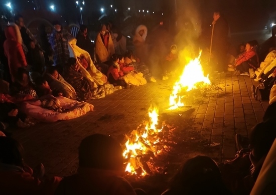 估摸著地震過去了,老師們跑回宿舍,為學(xué)生抱來被子,又找到些廢舊桌凳,試著燒火取暖。與此同時(shí),學(xué)校與學(xué)生家長(zhǎng)取得聯(lián)系,陸續(xù)有學(xué)生被接走。走的人要拍一張照片發(fā)到班級(jí)群里,確認(rèn)安全。