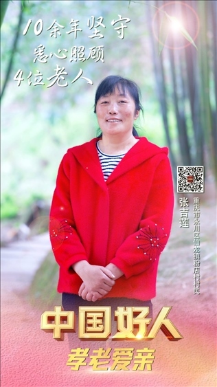張吉蓮,女,1973年12月生,重慶市永川區(qū)仙龍鎮(zhèn)粉店村村民。1996年,張吉蓮與仙龍鎮(zhèn)張家村的凡時(shí)德結(jié)婚。在相繼為父親和奶奶養(yǎng)老送終后,張吉蓮將3位年邁體弱的叔叔接到自己家里照顧。在她的悉心照料下,幾位老人衣食富足,生活幸福。鄰里鄉(xiāng)親受其影響,逐漸形成了孝老愛親、守望相助的文明鄉(xiāng)風(fēng)。