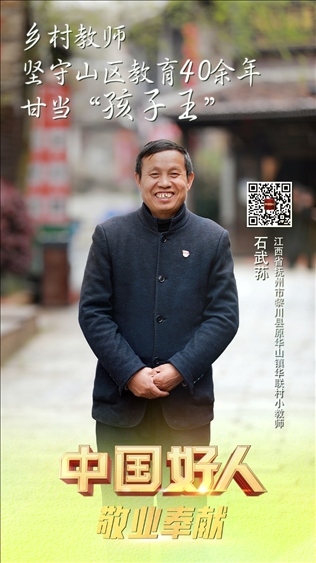 石武蓀,男,1962年5月生,中共黨員,江西省撫州市黎川縣原華山鎮(zhèn)華聯(lián)村小教師。參加工作40多年來,他扎根偏遠(yuǎn)山區(qū),數(shù)次放棄進(jìn)城機(jī)會,默默堅(jiān)守在離縣城30多公里的大山里,把自己的青春年華無私地奉獻(xiàn)給了山區(qū)的百姓和孩子們。