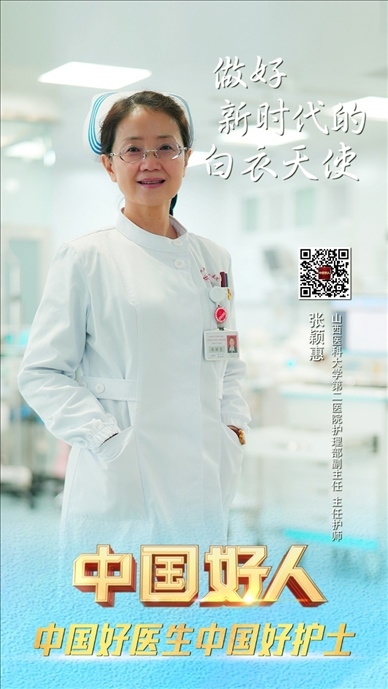 張穎惠,女,1971年12月生,中共黨員,山西醫(yī)科大學(xué)第二醫(yī)院護(hù)理部副主任、主任護(hù)師,第49屆南丁格爾獎?wù)芦@得者。從事護(hù)理工作30多年,她始終撲在一線,面對重大突發(fā)事件第一時(shí)間挺身而出;她帶領(lǐng)同事們不斷創(chuàng)新護(hù)理技術(shù),探索危重患者查房模式,構(gòu)建護(hù)理質(zhì)控體系;她積極為貧困地區(qū)、基層醫(yī)療機(jī)構(gòu)送知識、送技術(shù)、送教育、送專業(yè),用實(shí)際行動詮釋了新時(shí)代白衣天使的使命與擔(dān)當(dāng)。