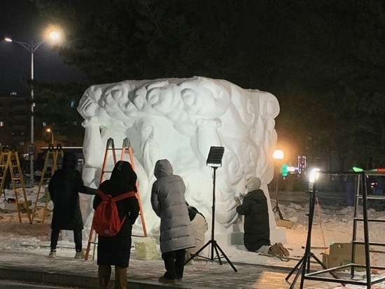 能夠與冰雪“親密接觸”,中國美術(shù)學(xué)院的熊竣苓要感謝剛剛在哈爾濱落幕的第十六屆國際大學(xué)生雪雕大賽。他所在的團(tuán)隊由包括他在內(nèi)的4位南方同學(xué)組成,他們創(chuàng)作的雪雕作品《盤古開天》獲得了一等獎。這段比賽經(jīng)歷讓第一次去哈爾濱的熊竣苓非常難忘,“最近哈爾濱很火,雖然我是去參加比賽的,但能去哈爾濱一趟,也非常激動了。我記得我們從機(jī)場到酒店的路上,透過車窗看到了霧凇,一下子就讓我這個南方人感受到了北方冬天的美。”他回憶,做雪雕時,他和另外3位同學(xué)都既緊張又興奮,“我們都是第一次觸摸雪做雕塑,此前在學(xué)校練習(xí)時是用泥巴或石膏,跟雪是完全不同的質(zhì)感,所以過程中我們都小心翼翼,非常緊張;同時,我們都是第一次見到這么多雪,太激動了。”