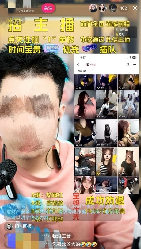 “跟我做主播,幫助負宅(債)女年底前實現(xiàn)宅(債)務清零,順帶提一臺小汽車?!敝星鄨蟆ぶ星嗑W(wǎng)記者看到,一名IP地址顯示在湖北黃石的博主去年8月以來陸續(xù)發(fā)布多條“女大學生博主招募”短視頻,并聲稱:在他的運作下,“新人主播在線人數(shù)300+,一場直播音浪四五萬”。他甚至“喊話”當?shù)啬掣咝E骸艾F(xiàn)在緊急招募20個大學生,每天只需直播兩小時,1個月播25天,可以拿到底薪1500元,沒有禮物要求,只需要有比較好的形象。”