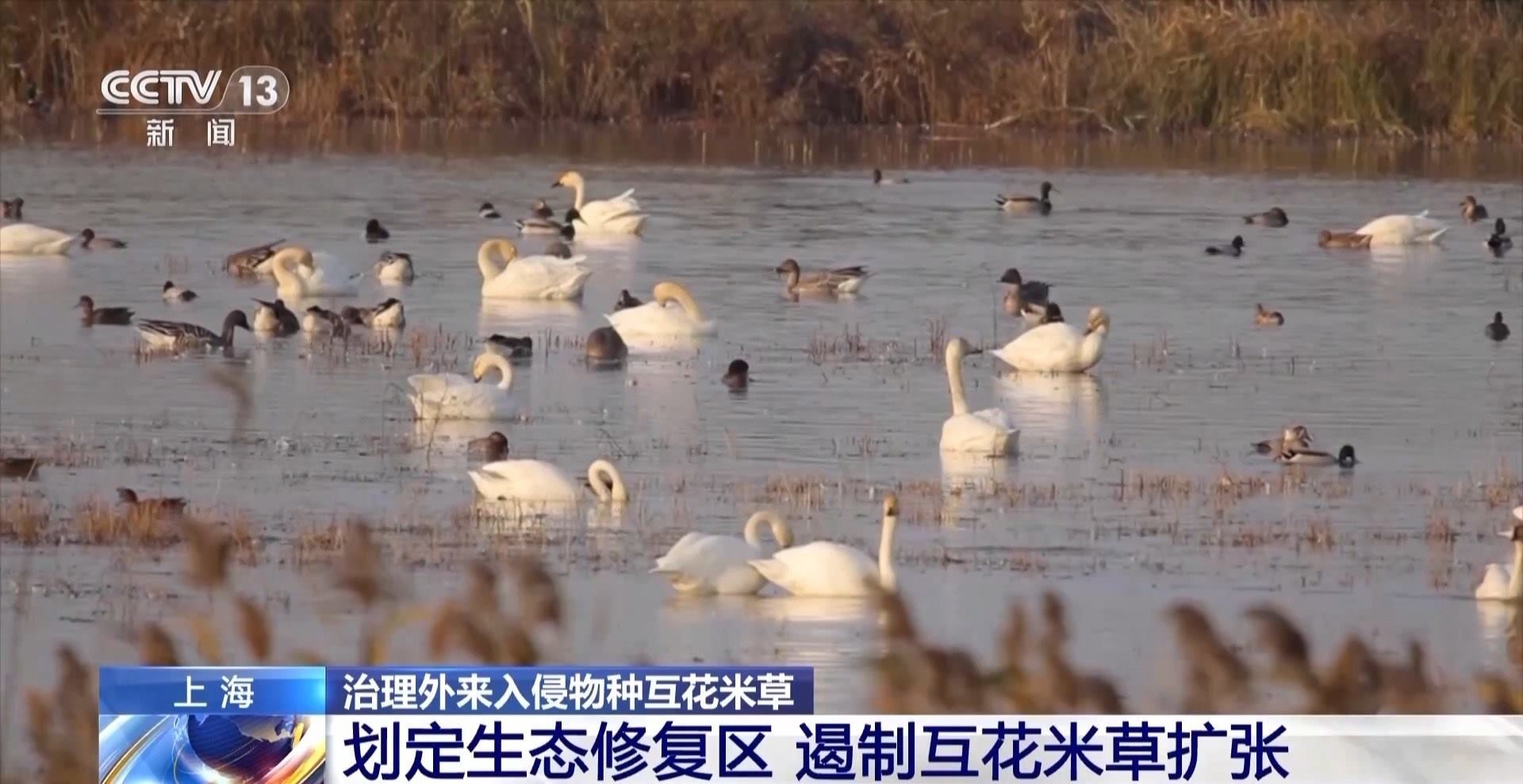 崇明東灘鳥類國(guó)家級(jí)自然保護(hù)區(qū)生態(tài)修復(fù)助理工程師 孫雪娜:經(jīng)過我們科研監(jiān)測(cè),發(fā)現(xiàn)互花米草它的根系很密,原本可能會(huì)在這里有非常多的底棲生物,比如說這個(gè)蟹類、貝類,但是因?yàn)樗苊艿倪@個(gè)根系,就導(dǎo)致這個(gè)底棲生物它沒有什么生存空間。然后對(duì)鳥類,它可能在這片取食的這個(gè)數(shù)量也很少,因?yàn)樗赡軟]什么吃的,所以這個(gè)生物多樣性就會(huì)很低。