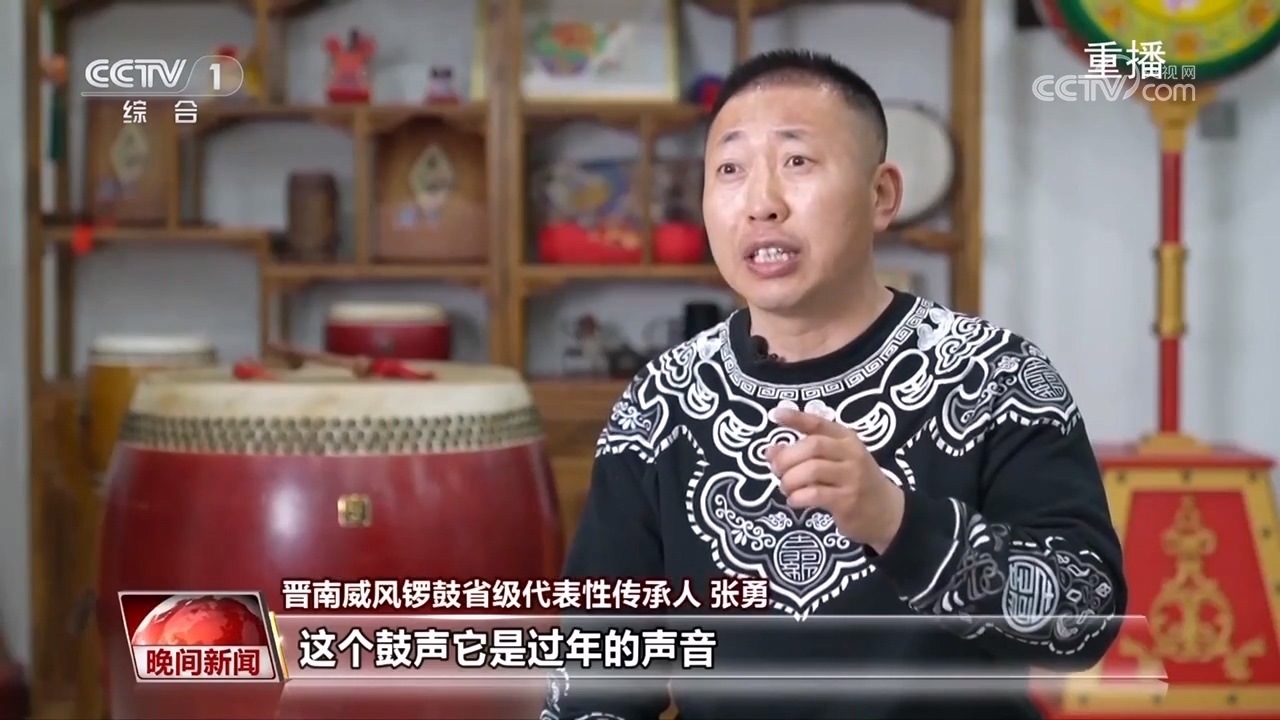 晉南威風(fēng)鑼鼓省級(jí)代表性傳承人 張勇:這個(gè)鼓聲是過年的聲音,也是扎根在每一個(gè)臨汾人心里頭,一種故鄉(xiāng)的聲音。人的一輩子所有大事,都會(huì)有鼓的出現(xiàn)。