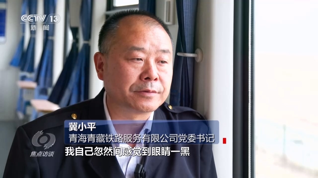 青海青藏鐵路服務(wù)有限公司黨委書記冀小平:“2009年11月份的一天,我們配送到最后一個站唐北站的時候,我忽然感覺眼睛一黑,有五六分鐘大腦一片空白?!?/p>