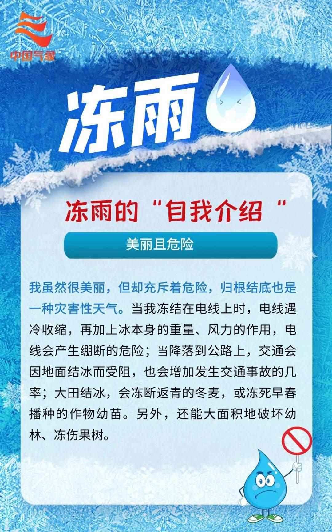 據(jù)資料顯示,中央氣象臺在2013年2月首次發(fā)布冰凍黃色預警,當時貴州、湖南、江西等地遭遇了嚴重的凍雨。第二次發(fā)布冰凍預警則是在2023年12月,發(fā)布冰凍黃色預警,提醒陜西、山西、河南、河北、山東、湖北、安徽等地部分地區(qū)注意防范較大范圍凍雨。 文字來源:中央氣象臺、中國氣象局氣象宣傳與科普中心(中國氣象報社)