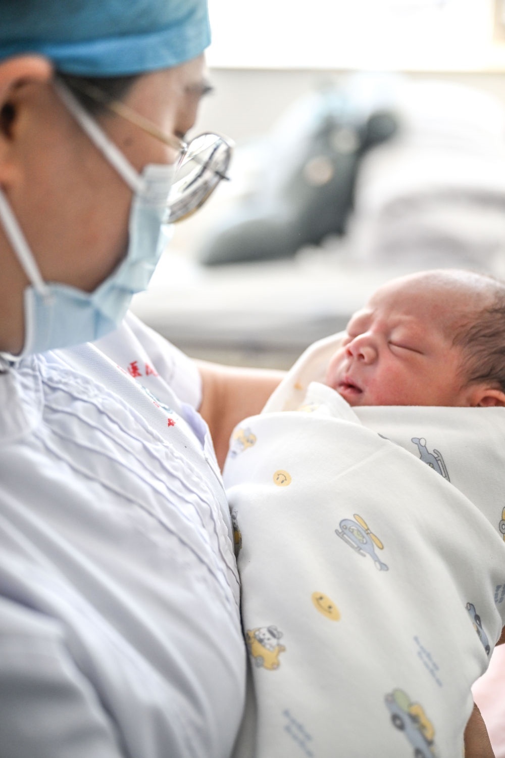 2月10日,在內蒙古烏蘭察布市第三醫(yī)院,醫(yī)護人員抱著一名剛出生的“龍寶寶”。新華社記者 連振 攝