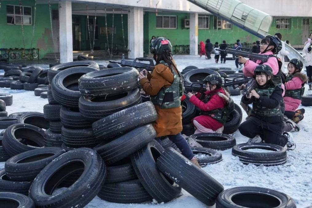 “前方障礙物發(fā)現(xiàn)敵情!”“快隱蔽!”……冬日的沈陽(yáng)寒風(fēng)襲人,在沈陽(yáng)市渾南區(qū)第九小學(xué)操場(chǎng)上,30名小學(xué)生分成兩組,身著CS裝備,正在激烈“戰(zhàn)斗”。在一系列奔跑、跳躍、匍匐中,孩子們既能強(qiáng)身健體,也增強(qiáng)了團(tuán)隊(duì)協(xié)作能力。