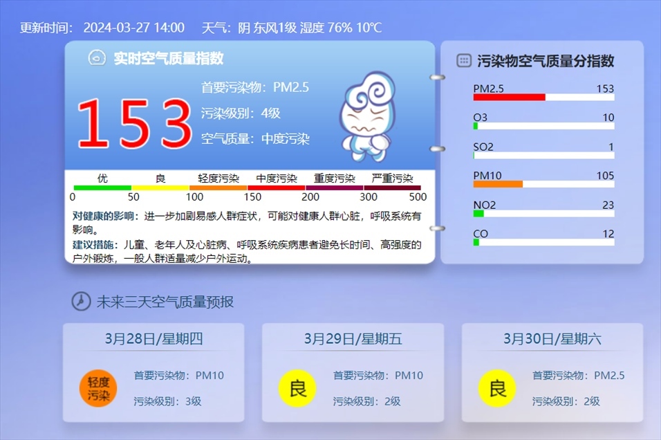 對(duì)健康的影響:進(jìn)一步加劇易感人群癥狀,可能對(duì)健康人群心臟,呼吸系統(tǒng)有影響。