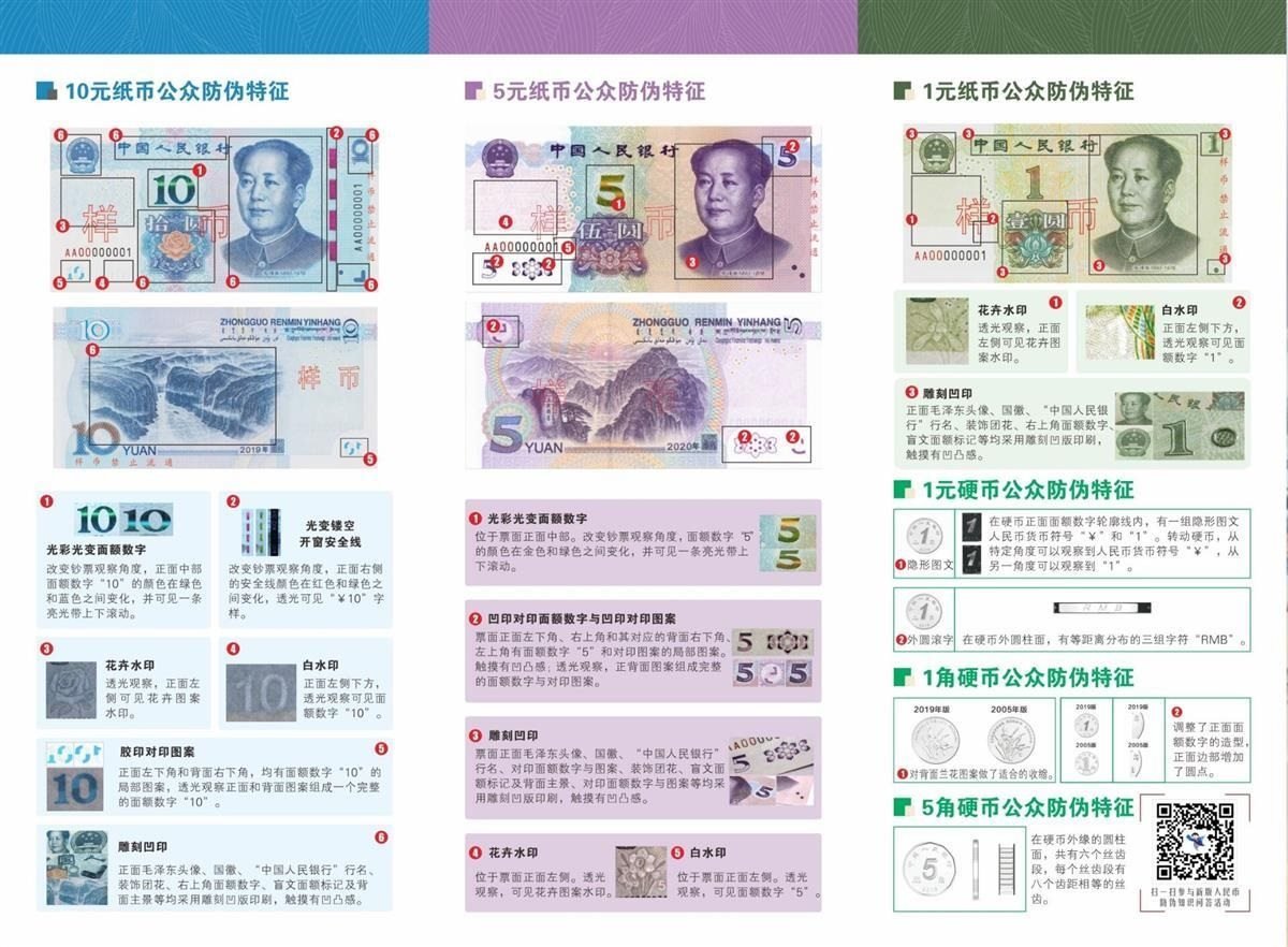 附:第五套新版人民幣公眾防偽特征