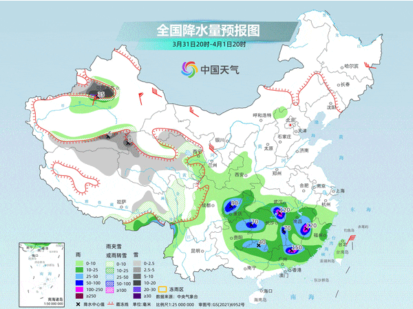 4月1-3日的強(qiáng)降雨過程,江淮、江南一帶將成為降雨重心,江漢、江淮、江南、華南北部、四川盆地東部等地有中到大雨,局地有暴雨或大暴雨,并伴有短時(shí)強(qiáng)對流天氣。