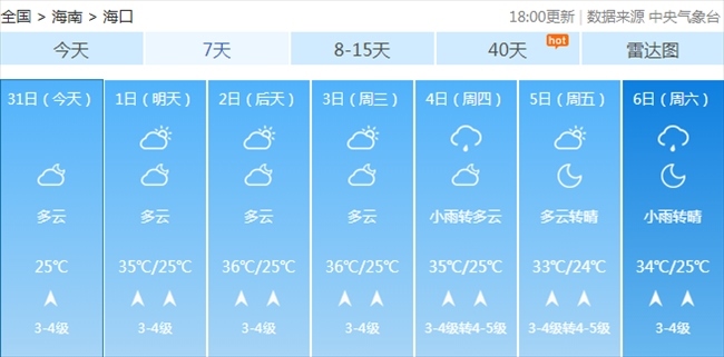 海口明天開始或接連有高溫出現(xiàn)。
