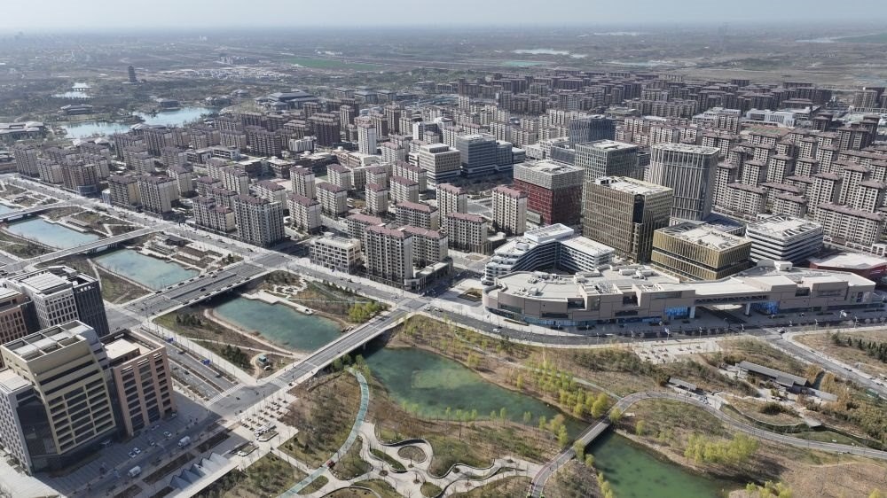 ↑這是雄安新區(qū)容東片區(qū)內(nèi)的樓宇(3月29日攝,無(wú)人機(jī)照片)。