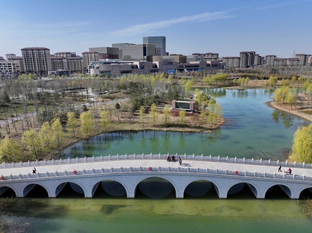 ↑這是雄安新區(qū)金湖公園(3月29日攝,無(wú)人機(jī)照片)。