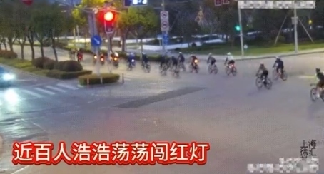 ·“暴騎團(tuán)”近百人無(wú)視交規(guī)闖紅燈,上海交警開(kāi)展專項(xiàng)整治。