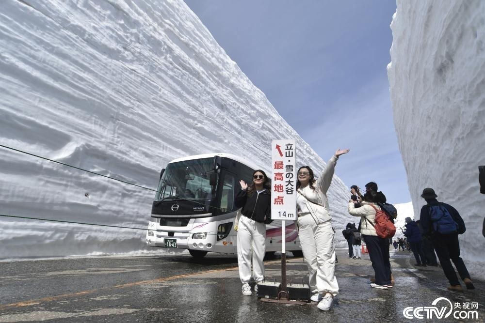 當(dāng)?shù)貢r間2024年4月15日,日本富山縣立山町,日本著名的“雪墻公路”對公眾開放,兩側(cè)積雪高達14米,吸引大批游客。