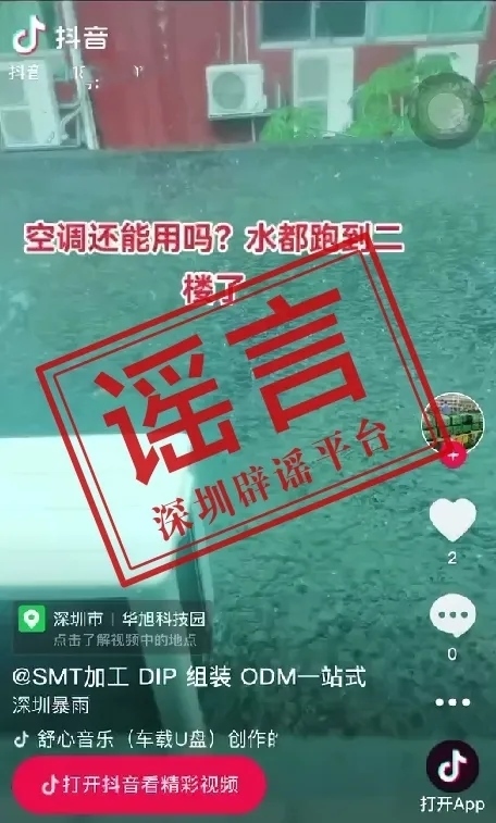 央視網(wǎng)消息:據(jù)“深圳網(wǎng)絡(luò)辟謠”微信公眾號消息,4月21日上午,有網(wǎng)帖稱深圳“寶安區(qū)華旭科技園由于雨水過大,二樓存在大量積水”,短視頻顯示的地點(diǎn)是“寶安區(qū)華旭科技園”。據(jù)向應(yīng)急部門核查了解,信息不實(shí),該科技園并沒有發(fā)生網(wǎng)帖所稱大量積水的情況。