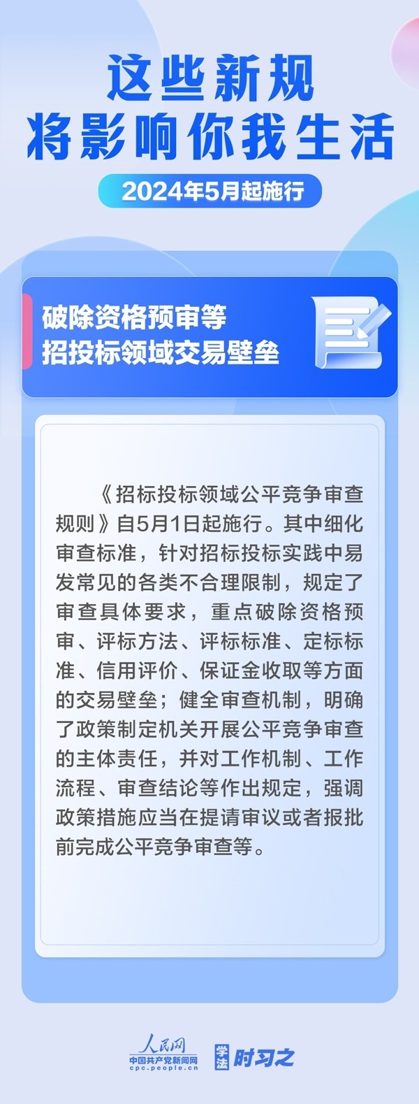 促進非銀行支付行業(yè)健康發(fā)展;首次對社會組織名稱進行統(tǒng)一規(guī)定;破除資格預審等招投標領域交易壁壘……5月起,這些新規(guī)施行,將影響你我生活。