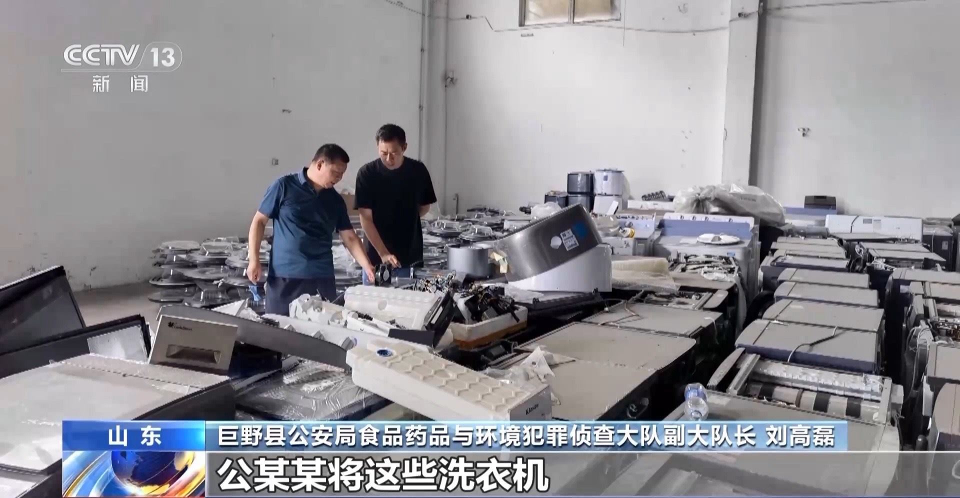 巨野縣公安局食品藥品與環(huán)境犯罪偵查大隊指導員 薛永亮:這起案件涉案洗衣機數(shù)量達到7萬余臺,金額1.5億余元,這也是我們到目前為止發(fā)現(xiàn)的在國內(nèi)拆解行業(yè)最大的一起涉及知識產(chǎn)權的案件。截至目前,我們已經(jīng)查扣涉案洗衣機7000余臺,6名嫌疑人均已被公安機關采取強制措施。