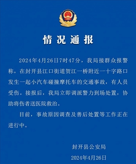 ·廣東封開(kāi)縣警方:一小汽車沖撞多輛摩托車,有人受傷。