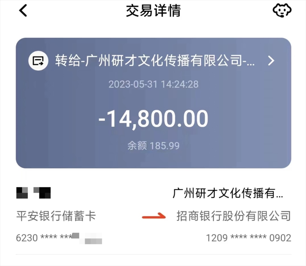 陳鑫說,為了提升未來工作機(jī)會,他一直都有考研的計(jì)劃。2023年5月,他通過社交平臺得知了廣州研才教育機(jī)構(gòu)的考研輔導(dǎo)服務(wù)?!白稍兊臅r(shí)候,招生老師說他們機(jī)構(gòu)和很多學(xué)校都有深度合作,可以承諾筆試保過,通過率高達(dá)98%以上,面試只要配合導(dǎo)師走個(gè)過場即可,保證考上理想學(xué)校?!?/p>