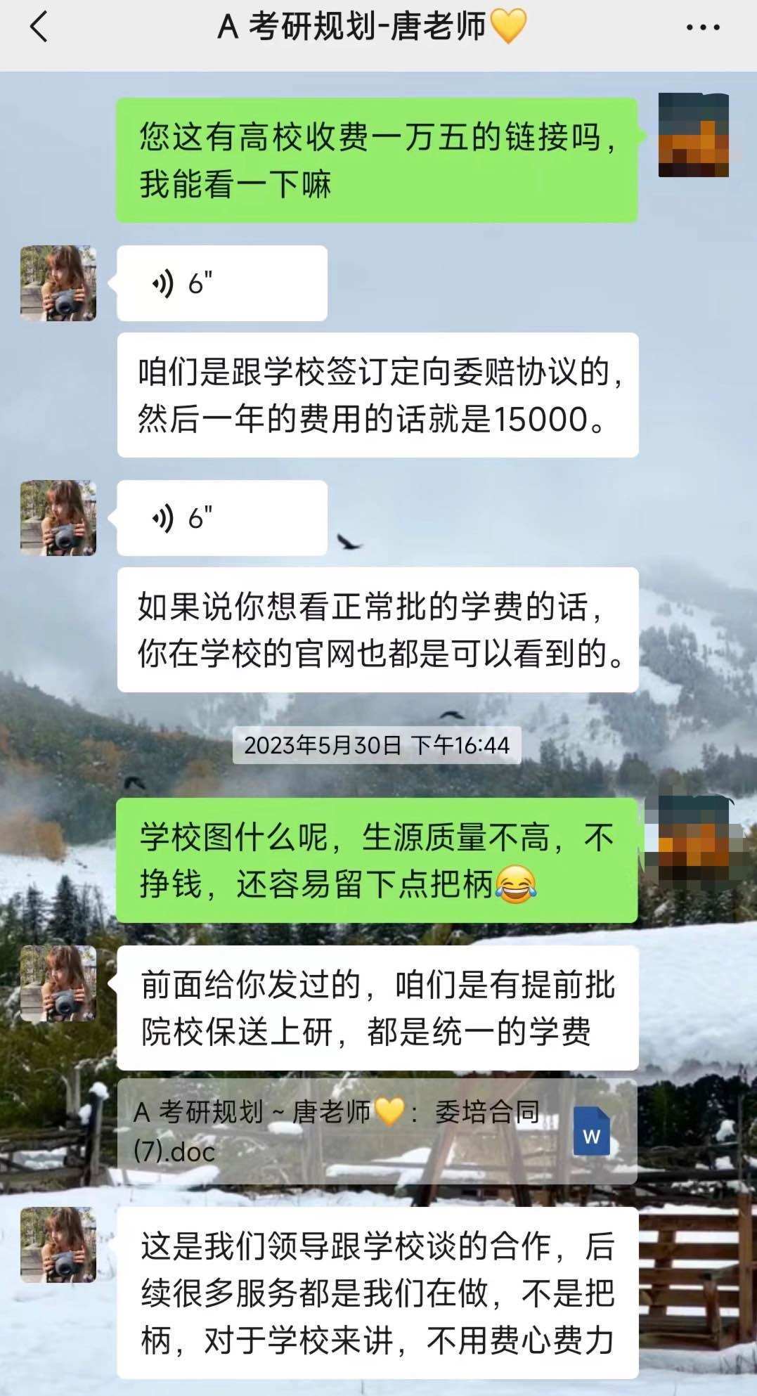 “我和我丈夫都報(bào)名了,一共是支付了33600元的學(xué)費(fèi)。”王女士說,在報(bào)名后她收到了一份《網(wǎng)絡(luò)培訓(xùn)服務(wù)協(xié)議》,她仔細(xì)閱讀協(xié)議后發(fā)現(xiàn)其中并未提及招生老師所承諾的“院校推優(yōu)項(xiàng)目”?!拔姨岢鲑|(zhì)疑后,招生老師就以這些內(nèi)容太敏感,不能寫在合同里來解釋,而且還提供了往年成功的案例作為證明,讓我放心?!?/p>