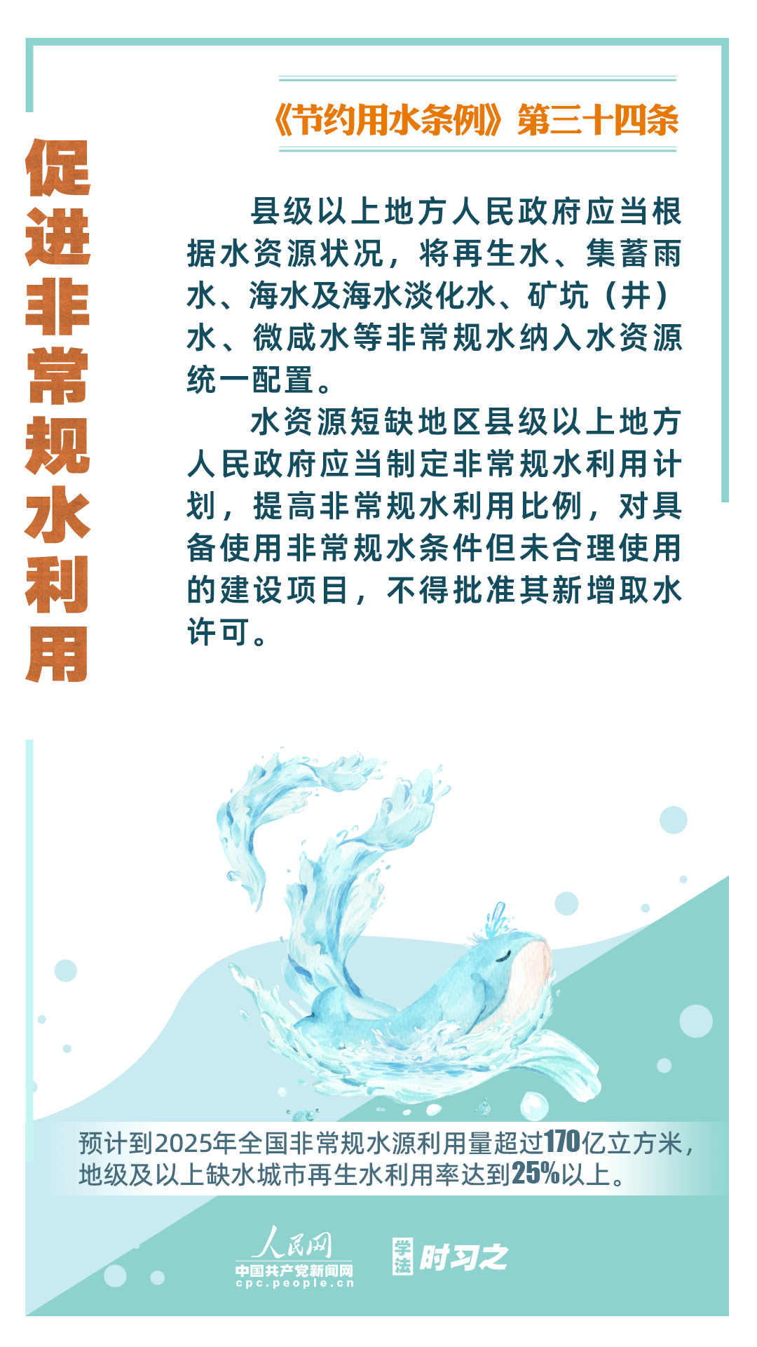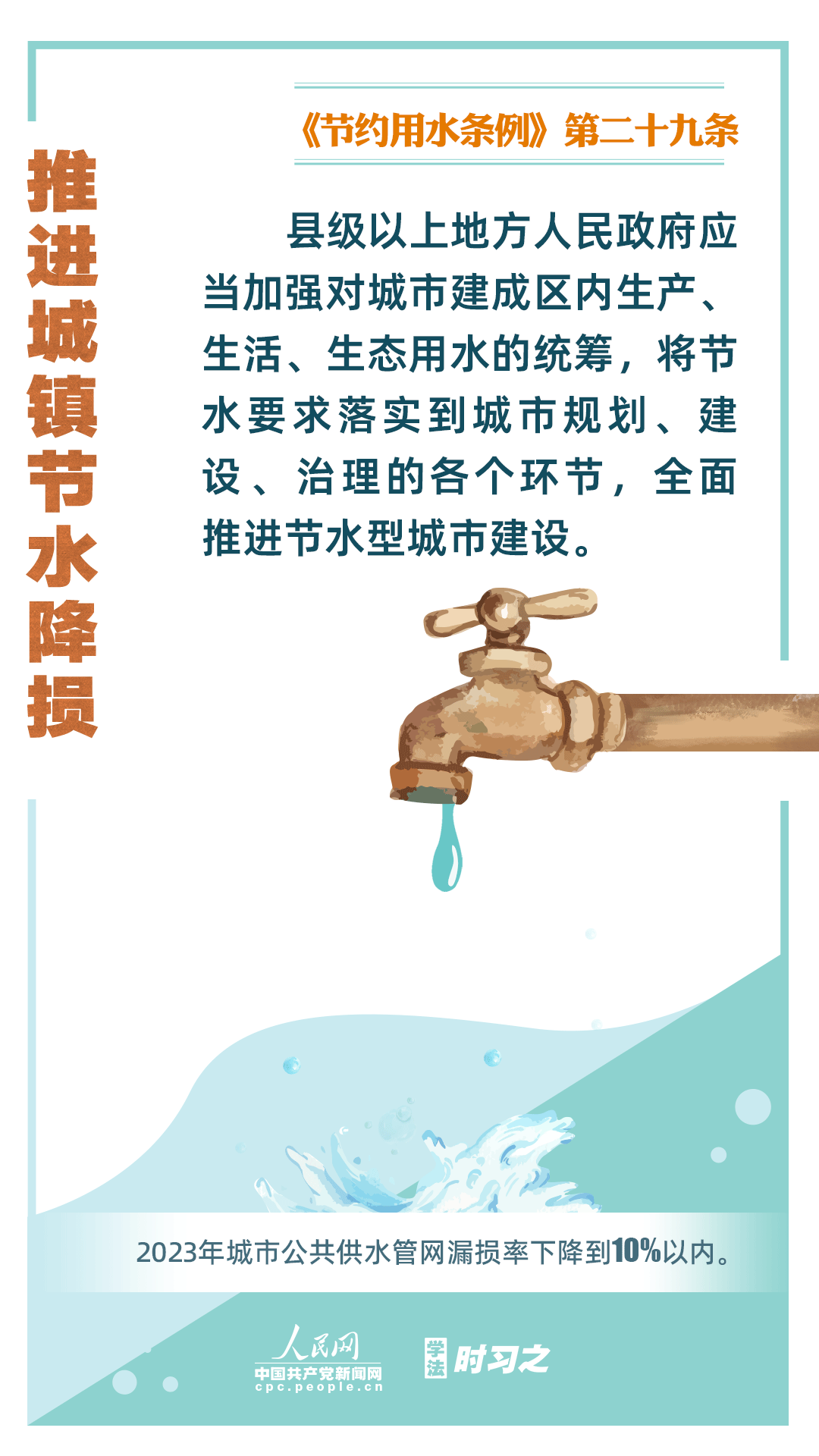 《節(jié)約用水條例》(以下簡(jiǎn)稱《條例》)將于2024年5月1日起施行,這是我國(guó)首部節(jié)約用水行政法規(guī)。節(jié)約用水,是解決我國(guó)水資源短缺問題的根本措施,《條例》以水資源可持續(xù)利用為目標(biāo),建立健全節(jié)水制度政策體系,以法治方式和法治途徑實(shí)現(xiàn)水資源節(jié)約集約高效利用,促進(jìn)全社會(huì)節(jié)約用水。