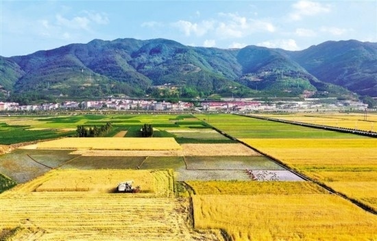 5月16日,湖北省襄陽(yáng)市??悼h馬橋鎮(zhèn)中坪村。小滿將至,當(dāng)?shù)匦←滉懤m(xù)成熟,進(jìn)入收獲季。楊 韜攝(中經(jīng)視覺(jué))