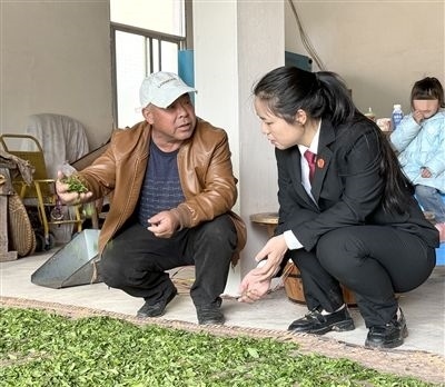 在茶園,法庭干警們向茶農(nóng)了解了茶葉產(chǎn)出和銷售情況,為茶農(nóng)詳細講解了茶葉在種植、采摘、加工、包裝過程中易發(fā)生的法律問題,解答了茶農(nóng)的法律疑問。同時,結(jié)合茶農(nóng)身邊發(fā)生的典型案例,用群眾聽得懂的語言,為茶農(nóng)講解了茶葉在運輸、銷售過程中應(yīng)防范的法律風(fēng)險,提升茶農(nóng)的法律意識,受到了茶農(nóng)的一致好評。
